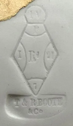 View PDF Shape Name Boote 1851 Potter Name Boote, T. & R. (& Co.) Photo Type Mark - Photo Item Ewer Parent Image Boote 1851 | T. & R. Boote (& Co.) | Ewer | Item | 005 Enlarge Image