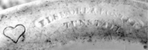The impressed mark has Forster misspelled as Foster.  The heart beside the name was impressed in the clay as well as the mark.