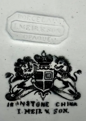 View PDF Shape Name Gothic Potter Name Meir, John (I. or J.) & Son Photo Type Mark - Photo Item Plate - Various Sizes 4" to 10" Parent Image Gothic | John Meir & Son | Plate | Item | 001 Enlarge Image