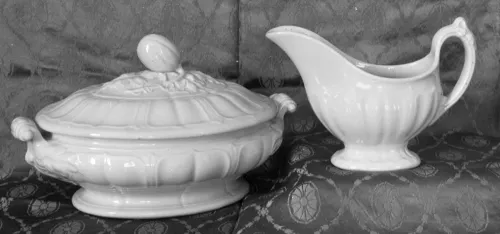 View PDF Shape Name President Shape Potter Name Edwards, John Photo Type Collection - Photo Item Vegetable Tureen Base and Lid Notes With Gravy Boat Enlarge Image
