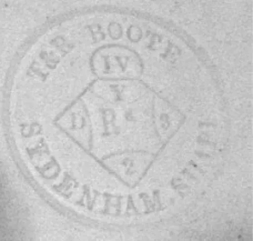 View PDF Shape Name Sydenham Shape Potter Name Boote, T. & R. (& Co.) Photo Type Mark - Photo Item Butter Dish Base Parent Image Sydenham Shape | T. & R. Boote | Butter Dish Base | Item | 001 Enlarge Image