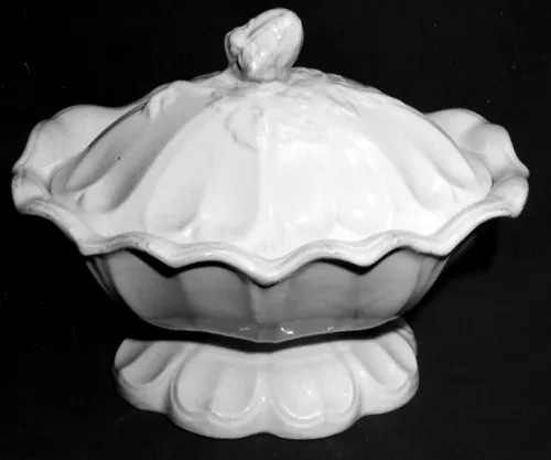 View PDF Shape Name Sydenham Shape Potter Name Unspecified Photo Type Item - Photo Item Vegetable Tureen Base and Lid Notes Oval Version with Acorn Finial Enlarge Image Associated Images Sydenham Shape | Unspecified | Sauce or Soup Tureen Lid | Finial | 001