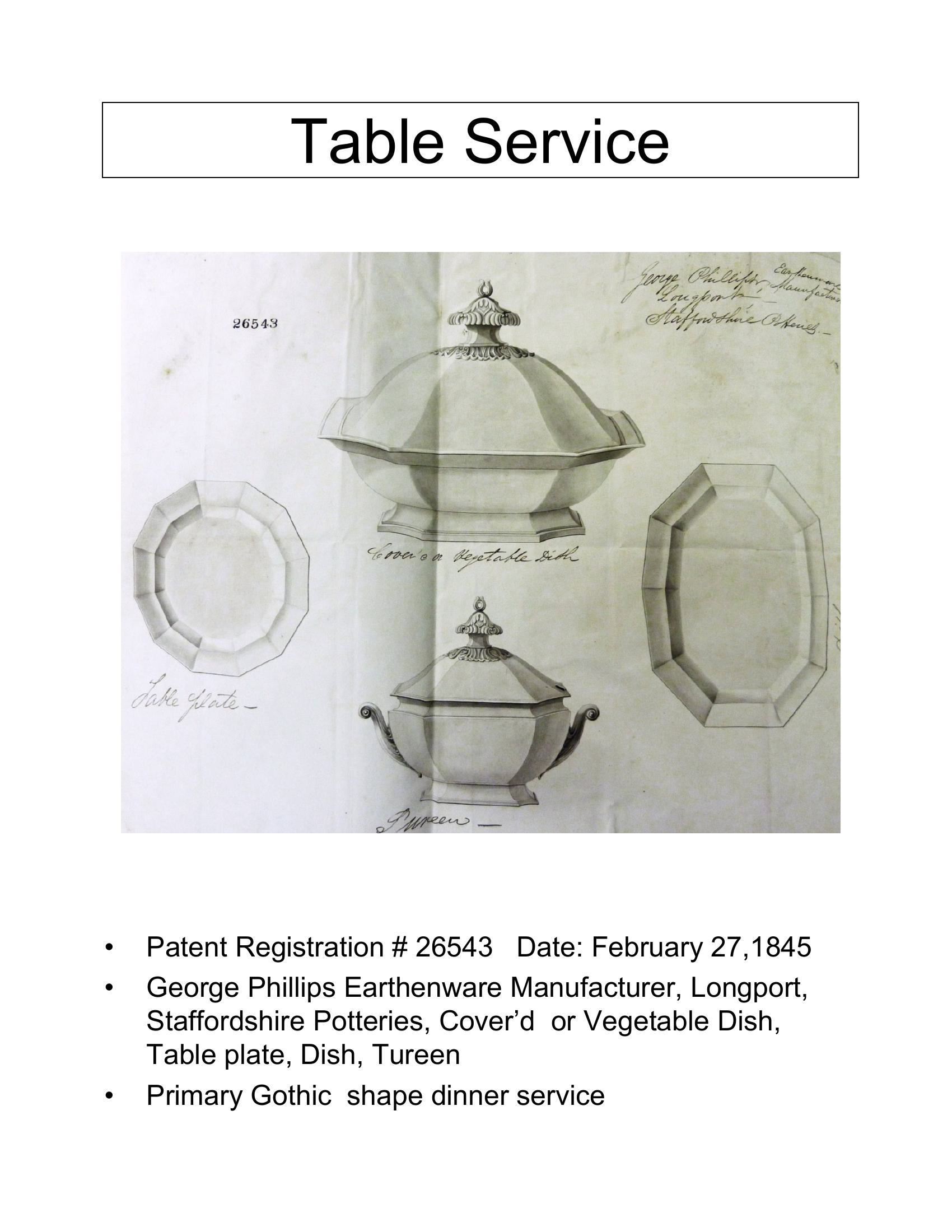 View PDF Kew Registration # 26543 Registrar (Potter, Modeler or Agent) George Phillips Date Registered February 27, 1845 Shape Gothic Items Sauce or Soup Tureen Base and Lid Circa Decade 1840s